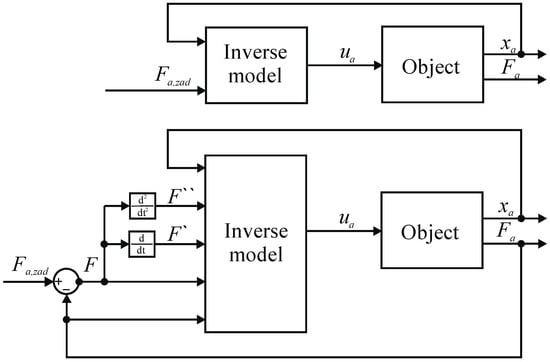 It was considered reasonable to make a quantitative comparison between the developed dynamic model and the static model presented by the relationship  being the de facto static characteristics of the object. The two models were verified and compared. For this purpose, inverse models were used to control the object according to the diagram on Figure 17.