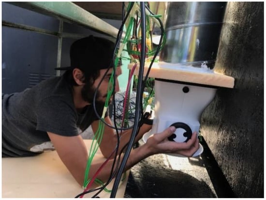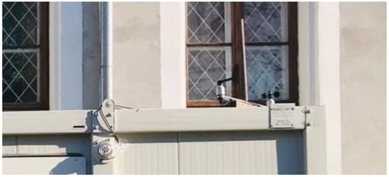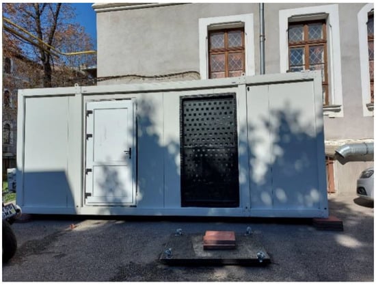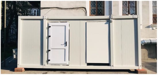 The same type and number of measuring devices were mainly used as in the previous experimental study (see Table 1 and Figure 1). Their position was mostly the same, too (e.g., thermocouple’s location within the GTC; see Figure 1). The sensors of the weather station were installed on the left corner of the container in order not to influence or obscure the measured parameters (Figure 7).