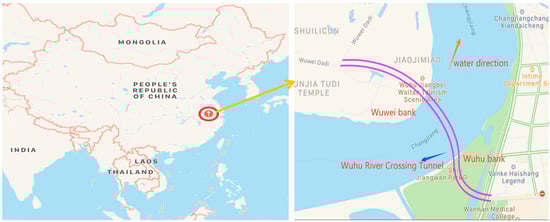 The Wuhu River-Crossing Tunnel is located at the Yangtze River in Wuhu City, Anhui Province, China, as shown in Figure 1. The river-crossing tunnel is an urban expressway tunnel. The expressway has six lanes and the design speed is 80 km/h. The inner diameter of the shield tunnel is 13.3 m and the outer diameter is 14.5 m.