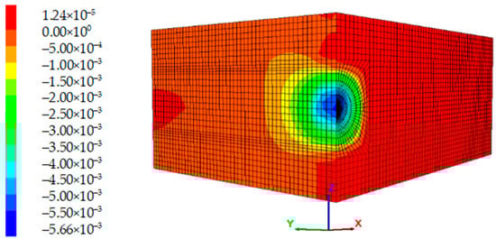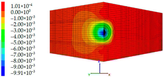 The z-direction displacement contour of the unreinforced tunnel end (unit: m).