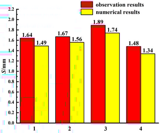 Figure 13 shows field observation displacement and numerical displacement at the portal monitoring point. From the figure, it can be seen that the numerical results at the portal are consistent with the field observation results, and the error does not exceed 10%. This demonstrates that the simulated model is in reasonable agreement with the field observation.