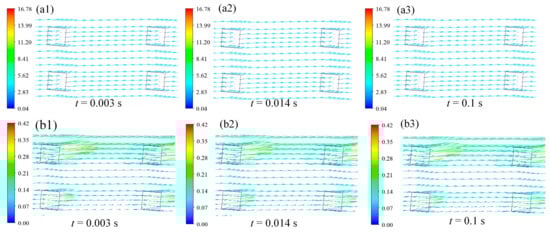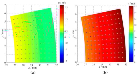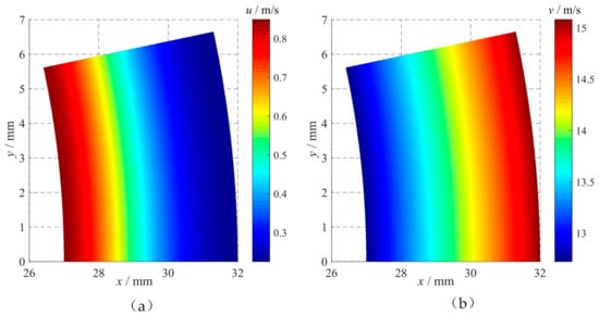 Velocity field of oil film with uniformly distributed hexahedron textures ((a) is radial velocity; (b) is angular velocity).