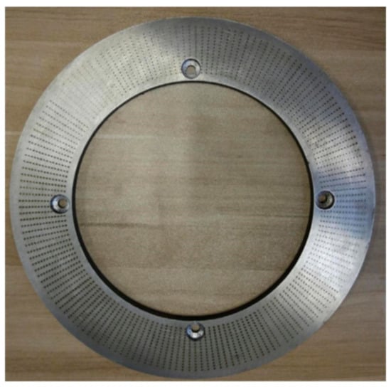 A laser-marking machine was used to texture the surface of the friction disk in order to analyze the phenomenon of oil film cavitation, some of the laser marking machine’s parameters were set as shown in Table 4, and the textured friction disk was processed as shown in Figure 30.