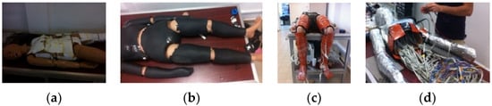 This particular manikin prototype was designed and built so that it could be placed in various postures, such as lying down, sitting, or standing positions. The dimensions of this protype were chosen according to the standardized human skin surface of a female human body with a surface area of about 1.8 m2 [,]. The main structure is made of polyvinyl, and the surface has been covered with a 5 mm insulation of elastomer membrane (Figure 5b). The role of this membrane is to reduce heat transfer inside the manikin in order to protect the internal electronics from overheating. The hardware components of the thermal prototype were developed in successive stages, as seen in Figure 5a–d).