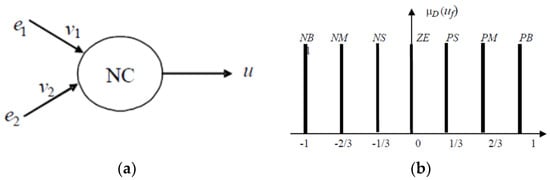 The singleton-type membership function μD(u) of control variable is considered for the sake of simplicity; thus, will be substituted by , the singleton abscissa. In conclusion, based on (1) the singleton fuzzifier for , (2) the center-average type defuzzifier, and (3) the min inference, the M IF …, THEN … rules will produce the relation for crisp control at each time step kτ []