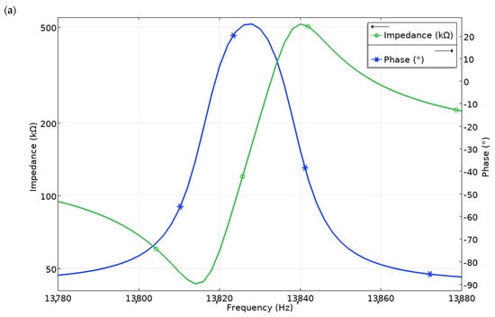 p-p. The remaining segments of the piezoceramic ring were set to open-circuit condition. Analyzing the results of the simulation, it can be noticed that the resonant frequency of the first bending mode of the trapezoidal cantilever is obtained at the frequency of 13.83 kHz (