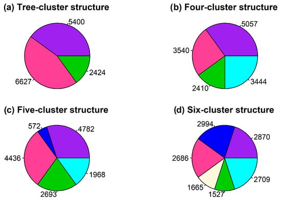 Figure 3 reveals that the four- and six-cluster structures demonstrated an approximately uniform distribution of gene expression profiles in the formed clusters. This observation suggests a higher quality of distribution of the gene expression profiles in the clusters based on the criteria employed in the proposed model.