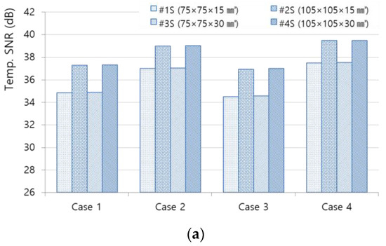 Comparison of LIT simulation results by case: (a) temperature SNR (#74 frame); (b) amplitude SNR (#58 step); and (c) phase SNR (#58 step).