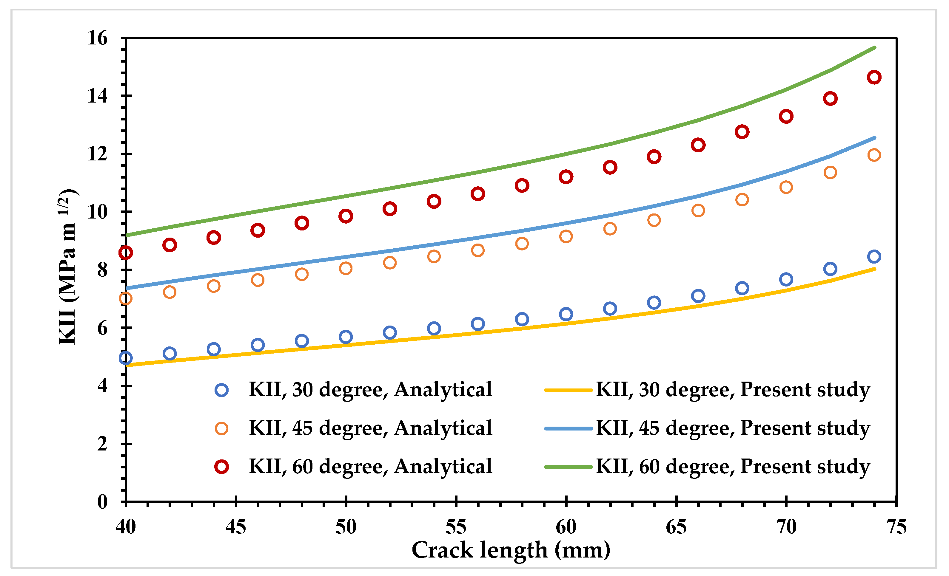 - Wawrzynek, P.; Carter, B.; Banks-Sills, L. The M-Integral for Computing Stress Intensity Factors in Generally Anisotropic Materials; National Aeronautics and Space Administration, Marshall Space Flight Center: Huntsville, AL, USA, 2005.