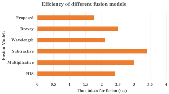 In another comparison, advanced machine learning models are used to compare the classification accuracy of the fused images obtained from different fusing models, namely principle component analysis (PCA), weighted median filter-based Gram–Schmidt transform (WMFGS) and Gram–Schmidt (GS). The visual differences between different classification results are portrayed in Figure 15. The CNN model using the random forest (RF) classification model is used to classify the fused images obtained from the four fusion models. The CNN model designed has three layers: one for preprocessing, the next layer for fusion, and the final layer for classification. The proposed feature extraction model and fusion models are converted into appropriate kernel functions and implemented in the first two layers. The random forest classification model is a combination of self-relying decision trees, and decision trees handle alphanumeric data easily when compared with other classification models. From the sample of a thousand fused images obtained from the four fusion models, seven hundred samples are used to train and three hundred samples for testing the RF model. The following steps are carried out to build the infrastructure of the CNN model. The first stage is data acquisition, followed by data preprocessing. Subsequently, the RF classification model using sklearn and NumPy python packages is implemented to train and test the sample fused images obtained by the four fusion models used in this study.