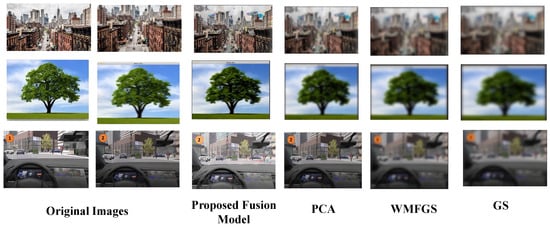 X. Zhang et al. [] have proposed a multi-focus image fusion benchmark (MFIFB), that includes a test set of 105 picture pairings, a code library of 30 MFIF algorithms, and 20 evaluation measures. MFIFB is the first MFIF benchmark, providing a forum for the community to assess MFIF algorithms thoroughly. To understand the performance of these algorithms further, extensive tests have been carried out utilizing the suggested MFIFB. Effective MFIF algorithms are found by examining the experimental findings. More significantly, some remarks on the current state of the MFIF field are provided, which might aid in a better understanding of this topic. D. Kaimaris and A. Kandylas [] have suggested an innovative mechanism to obtain multispectral image data using UAVs and fuse them to improve the accuracy of the data. The photos from Parrot’s tiny multispectral (MS) camera Sequoia+ are examined at two ancient sites: a Byzantine wall (ground application) in Thessaloniki, Greece, and a mosaic floor (aerial application) at the archaeological site of Dion, Greece. The camera obtains RGB and MS pictures at the same time, which prevents image fusion, as is the case with the conventional use of panchromatic (PAN) and MS images in satellite passive systems. Using the image fusion methods of satellite PAN and MS pictures, this research shows that effective digital processing of the images (RGB and MS) of tiny MS cameras may result in a fused image with a high spatial resolution that maintains a considerable proportion of the original MS image’s spectral information. The great spectrum fidelity of the fused pictures allows for high-precision digital measurements in ancient sites, such as precise digital item separation, area measurements, and recovery of information not apparent with standard RGB sensors using MS and RGB data from tiny MS sensors. Reference [] have proposed a versatile hybrid fusion model to fuse infrared and visible image fusion models. They have used the combined concepts of visibility enhancement and multiscale decomposition to fuse the images. Initially, the authors proposed an effective preprocessing model followed by a decomposition model to decompose the information to the layers of their customized CNN model. Further, they have integrated the concepts of a visual saliency illumination map (VSIM) to retain the contrast information and enhance the fusion process. Reference [] have proposed a hybrid image fusion model to fuse medical images that exhibit multimodal characteristics. They have used the dual combination of nonsubsampled contourlet transform (NSCT) and discrete wavelet transform (DTCWT) approaches to fuse the images. The authors have used an advanced CNN model to create weight maps to monitor the pixel movement of the images. Further, the authors have included an advanced comparison-based method to convert the fusion mode to the appropriate coefficients required for the CNN model.