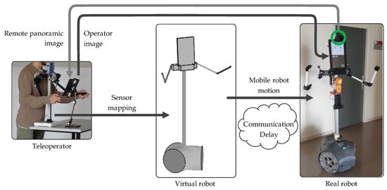 Teleoperation is the extension of sense and manipulation capacities to a distant location []. Teleoperated robots are devices remotely controlled by operators in distant environments [,,,,] to collect information or carry out tasks. In this context, telepresence provides people with the feeling of being present in a distant environment [].