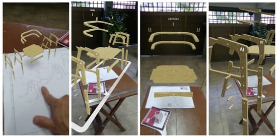 The evaluation involved participants from different sectors of scenography, such as executive management, production coordination, carpentry, machine control, and 3D modeling. Each participant was instructed to read and interpret the Augmented TD, which included the proposed study piece—a plywood chair executed with CNC Router. The four physical forms in A3 format were provided to each participant in their respective work environment for observation and behavioral analysis of their interactions with the artifact. The first 30 s of reading and manipulation of each sheet were narratively guided to help participants understand the tool’s usage possibilities and the different types of applied AR.