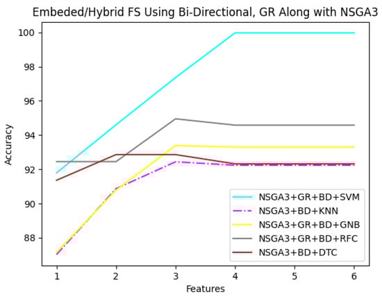 Hybrid NSGA3 + Bi-directional + GR feature selection performance.