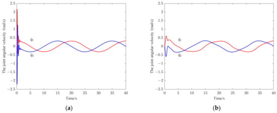 The joint angular velocity . (a) RBFTHC, (b) CTC.