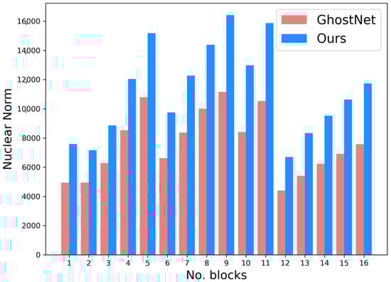 Visualization of the nuclear norm of the blocks of GhostNet and GhostNeXt on STL-10.