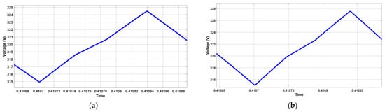 The calculated capacitance under the different proposed voltage ripples is implemented in the complete system. Figure 12 shows the voltage ripples obtained using the different capacitance values calculated with the developed equation. The purpose is to compare the initially proposed voltage ripples with those obtained using the minimum required capacitance equation developed in this work, to obtain a percentage error between them.