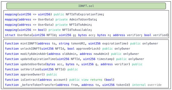 The IDNFT contract is the core part of implementing the business logic of the identity management system. The contract is shown in Figure 2.