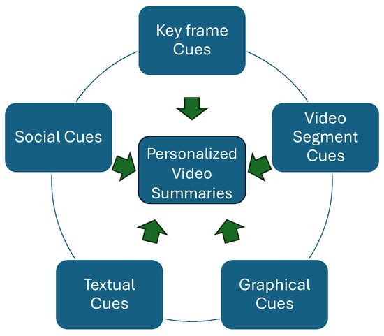 - Keyframe cues are the most representative and important frames or still images drawn from a video stream in the sequence of time []. For example, the personalized video summarization from Köprü and Erzin [] is configured as a keyframe option that maximizes a scoring function based on sentiment characteristics.