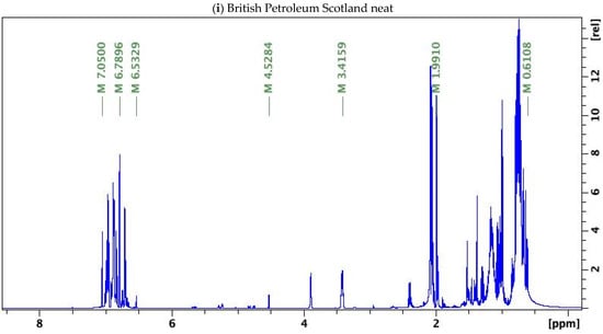 A simple 1H NMR method has been successful in the determination of petrol composition and some individual compounds with rapid and accurate results. Further investigation of NMR applications in the petroleum industry displayed the capabilities of 1H NMR coupled with PCA, k-NN (k-Nearest Neighbors), HCA and SIMCA (Soft Independent Modeling of Class Analogy), which proved to be a useful tool for categorizing petrol samples with adulteration (solvents), fuel additives and blends, petroleum mixtures (kerosene and diesel mixtures) and petrol samples with different octane numbers; NMR is a proven analytical tool for the identification and quantification of low-molecular-weight components [7,8,9,10,11]. The primary application of high-field NMR spectroscopy in the petroleum industry is in the quality control of hydrocarbon classes in a sample rather than individual compounds of the overly crowded complex spectra. 1H NMR methods coupled with clustering and multivariate classification techniques were used for the successful identification of adulteration in two types of samples. The potential of NMR spectroscopy for the structural elucidation of petrol components in a sample has been established.