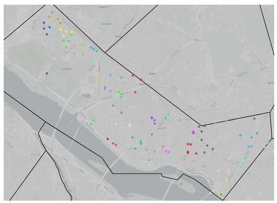 Bike station clusters in Mapo-gu district, Seoul, Korea (The dots in different colors represent different clusters).