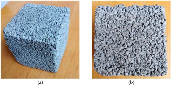 Porous concrete, also referred as pervious concrete, permeable concrete, or no-fines concrete, is a sandless concrete that is typically produced from a mixture of dense or porous gravel or crushed stone, cement, and water with a limited content of cement paste [,]. The defining characteristic of porous concrete is its distinctive structure, which comprises a greater volume of voids between the grains in comparison to conventional concrete [,].