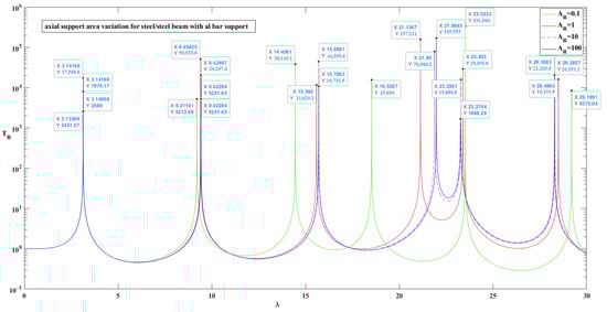 - In the frequency parameters SS1 and SS2, the bar material pairs with cAratio < 1 Al/Pb, Ag/Pb and Cu/Pb are ranked in terms of insulation quality as the na value increased towards 100 until the na = 1 value. Excluding Al/Pb, the TR is ranked according to the cAratio value (Table 5). The TR of the system with the Al/Pb bar material pair has a turning point at na = 2 and then increases. The support bar made of the Al/Pb and Ag/Pb material pairs with the lowest cAratio value provides better insulation for the different na regions (Table 6, Figure 20). When other material pairs are considered, it is seen that the cAratio is very low in the Pb/Al pair (Table 6).