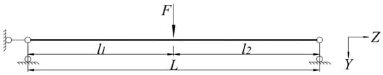 As depicted in Figure 6, the span length of the simply supported beam is L, the left span length is l1, and the right span length is l2. In addition, a concentrated load F is applied at an arbitrary position of the simply supported beam. The analytical solutions of this system are described as follows: