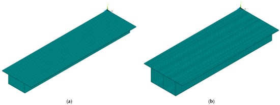 As can be seen from Figure 2, an opening is located at the center of the bottom plate of the thin-walled single-cell box section. According to Equation (1), q0 can be obtained. Meanwhile, it is easy to find that the additional static shear flow qi is zero due to the symmetry of the single-cell box section. Consequently, the total shear flow q in the closed box section equals the shear flow q0 in the open box section.