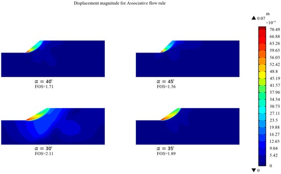 It is observed that the FoS values corresponding to the same angle are higher for the case of the associative flow rule compared to the non-associative flow rule, which was also demonstrated by Cheng et al. [].