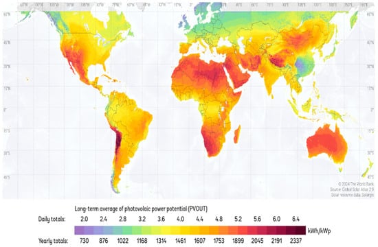 - World Bank Group. Solargis. ESMAP: Global Solar Atlas. Available online: https://globalsolaratlas.info/map?s=-29.905867,-71.251772&m=site&c=-29.905867,-71.251772,11 (accessed on 26 August 2024).