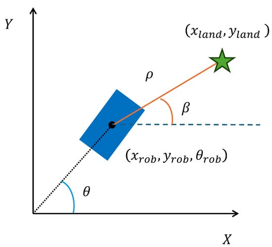 Given the new proposal distribution, each landmark position in the map is corrected based on the new observations in an EKF-like fashion, meaning that a separate EKF is applied to each observed landmark. New landmarks are initialized based on observations not associated with any preexisting map feature. The initialization happens according to the inverse observation model, which is defined as follows: