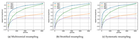 - Murray, L.M.; Lee, A.; Jacob, P.E. Parallel resampling in the particle filter. J. Comput. Graph. Stat. 2016, 25, 789–805. [Google Scholar] [CrossRef]