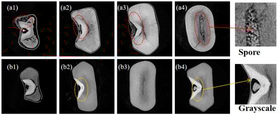 The non-destructive detection of changes in the internal characteristics of moldy maize kernels is challenging with conventional mold detection techniques. The detection of moldy maize can be achieved through sensory inspection, but this approach is ineffective and can only detect visible mold spots on the surface. Colony counting, enzyme-linked immunoassay [], and thin-layer chromatography [] involve laborious and expensive detection methods. Near-infrared spectroscopy [] and terahertz [] are non-destructive testing methods but have limited detection sensitivity, complex modeling challenges, and high technical requirements for test preparation. Electronic temperature measurement [] and CO2 detection [,] show hysteresis in mold detection. Currently, conventional image processing methods are utilized to detect the internal morphological characteristics of maize kernel samples. However, this approach requires the chemical slicing of maize, which is inefficient and environmentally polluting. Furthermore, it cannot provide isotropic information about the three-dimensional structure of a whole maize kernel []. In order to intuitively monitor the changes in the morphology of the embryo, endosperm, and grain at each stage of corn kernel development and quickly detect moldy corn kernels in the early stages, a non-destructive testing method that preserves the morphology of corn kernels is needed.