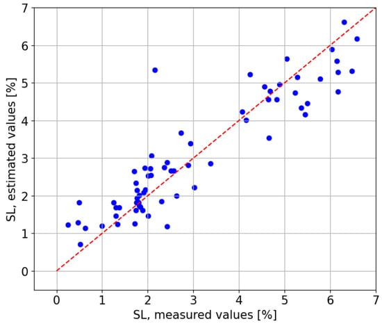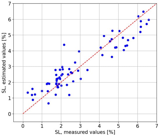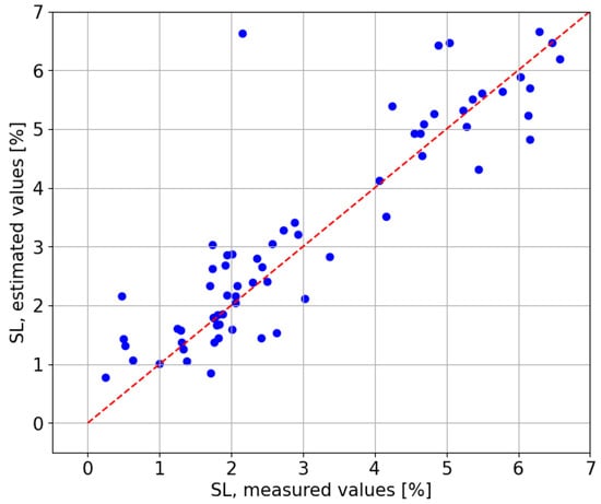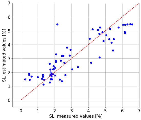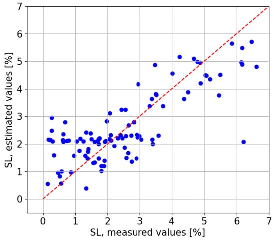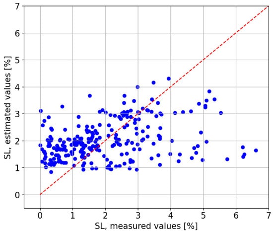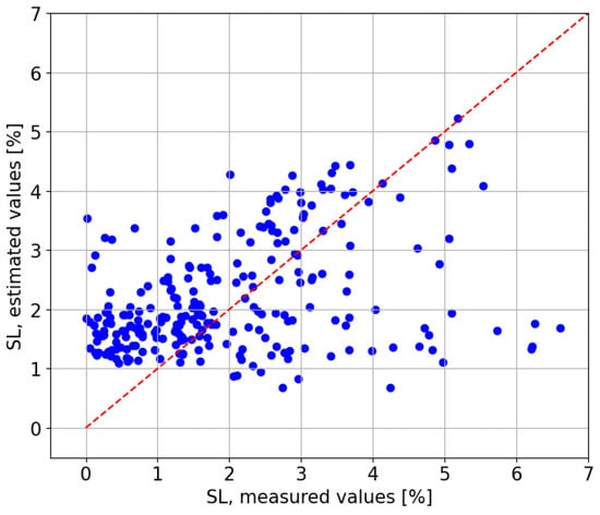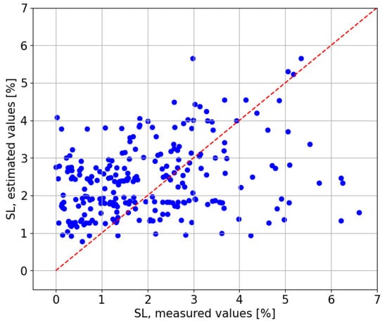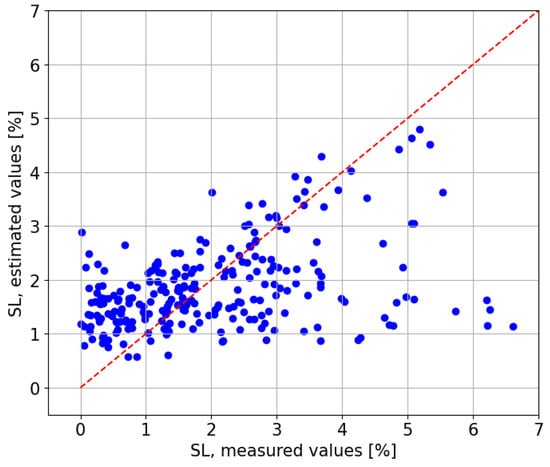 Measured vs. estimated values of SL for the CatBoost CIEMAT model.