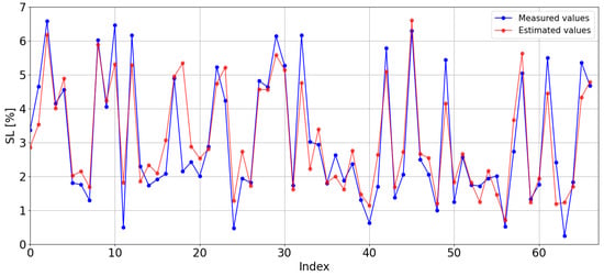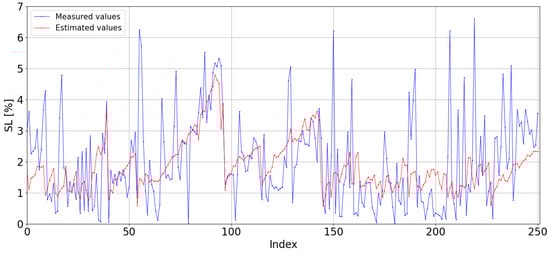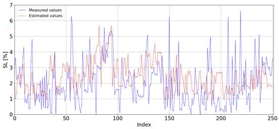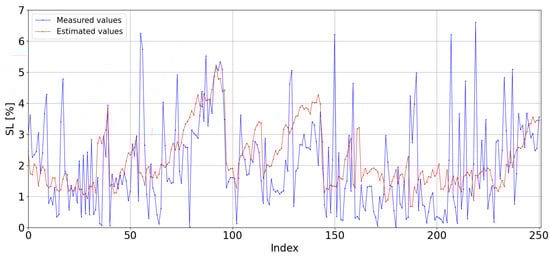 Measured and estimated values of SL for the ANN CIEMAT model.