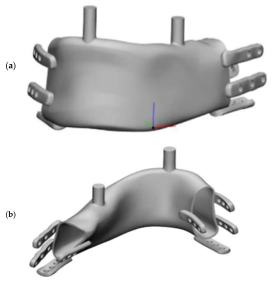 Model of extensive mandibular defect implant: (a) vestibular view, (b) lingual view.