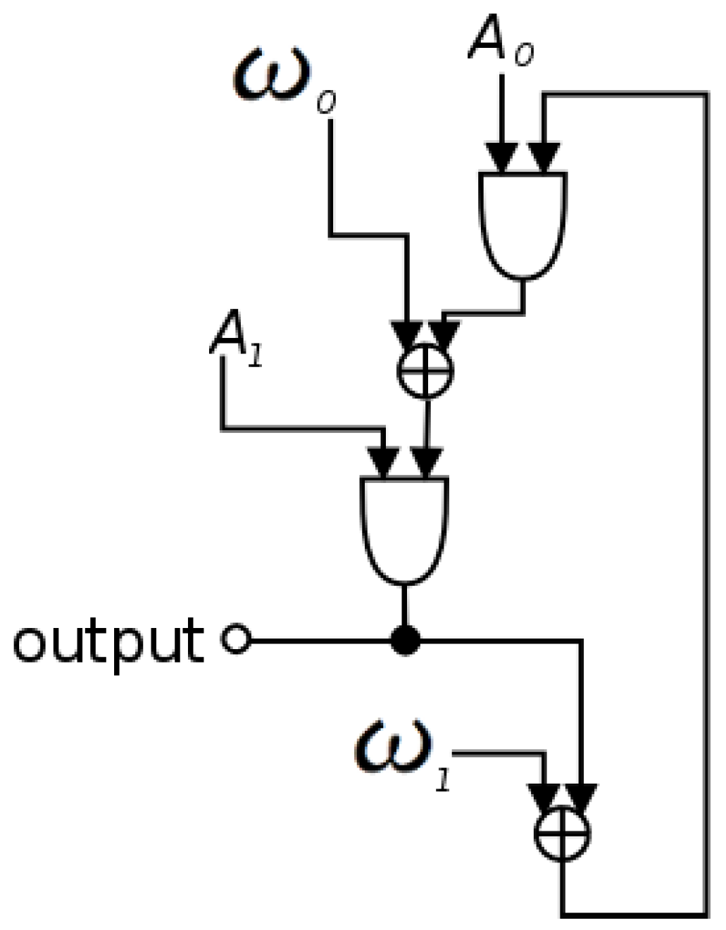 If we wish to modulate the modulating oscillator with the output of the carrier as in Figure 4, lookup oscillators will be insufficient for the same reasons as described above in the case of reciprocal sync. However we can incorporate a delay-free loop between oscillators by using RK4 to solve for any number of oscillators expressed by Equations (20)–(22).