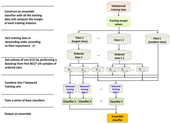 Flowchart of margin based imbalanced ensemble classification (ensemble size , range of resampling rate a 10–100%).