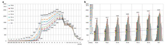 Figure 5 shows a graphical representation of the change in GBCA SIs in the MR phantom with varying TEs. Table 3 shows the results for SSI1, FSI1, CPFS, RSP, MPSI, MPP, EPMS, AST, and EP. As the TE decreased from 25 to 7 msec, SSI1 changed from 100 to 112 a.u., and FSI1 increased from 840 to 1236 a.u. Consequently, with decreasing TE, CPFS also increased from 740.0 to 1003.6%. RSP was found to be between 30 and 90 mmol, while MPSI increased from 1771 to 2425 a.u., and MPP changed from 2 to 4 mmol, while EPMS changed from 1671.0 to 2065.2%. AST increased from 600.8 to 996.6 a.u. with decreasing TEs. Table 3 shows the changes in EP mmol for each concentration with varying TE.