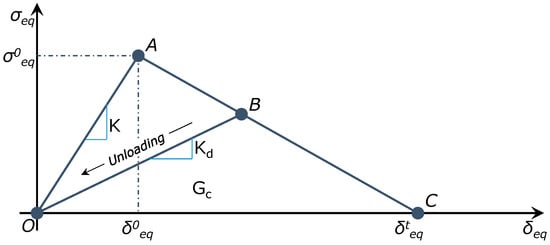 Each mode is characterized by the failure behavior reported in Figure 2. In particular, a linear elastic behavior with an initial stiffness K can be observed up to location A, which identifies the damage onset. Then, each location B on the segment AC identifies a partial damage condition characterized by a degraded stiffness Kd, up to location C, where the complete failure can be observed.