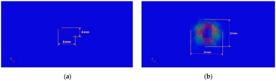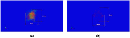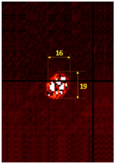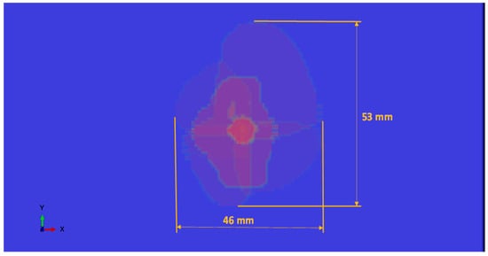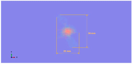 In this section, a comparison between the experimental results and the numerical ones for the both investigated configurations (continuum shell element and solid elements) is performed considering both intra-laminar and inter-laminar damages. Three 10 J impact experimental tests were performed. The damaged area was acquired by means of the ultrasonic C-Scan. Figure 19 shows the C-scan of one representative specimen.