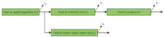 As an illustrative experiment, the dependency model-based multiple fault diagnosis method is applied to a control system. The dependency model of the control system is shown as Figure 2. Apart from the common fault , two branches are included in the model: (1) The first branch includes the faults and , (2) the second branch includes the fault .