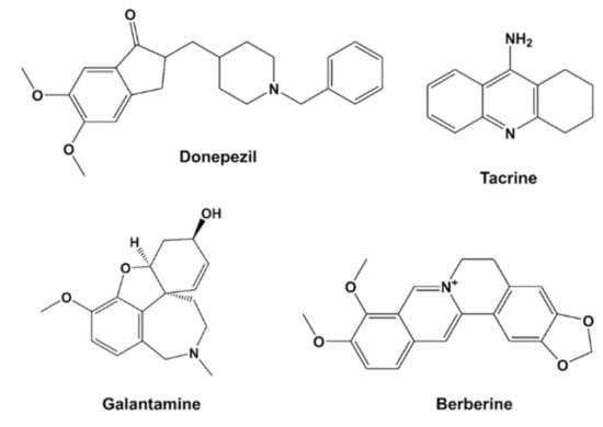 ChEIs are either of synthetic (e.g., donepezil and tacrine) or of plant origin (e.g., galantamine, huperzine A, and berberine). The current US Food and Drug Administration (FDA) approved ChEIs (donepezil, galantamine, and rivastigmine) have proved beneficial for patients with mild-to-moderate AD [,]; however, they are limited by induction of undesired side effects, and ultimately, only provide symptomatic rather than curative benefit. Nevertheless, the search continues for useful next-generation ChEIs with similar efficacy to the current drugs but with fewer adverse drug reactions (ADRs). Furthermore, additional beneficial properties such as provision of antioxidants, has garnered the use of certain plant extracts and phytochemicals as potential next-generation ChEIs [,,,,,].