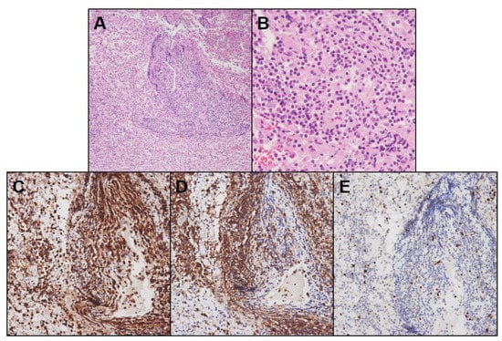 - Nagano, M.; Ayaki, T.; Koita, N.; Kitano, T.; Nishikori, M.; Goda, N.; Minamiguchi, S.; Ikeda, A.; Takaori-Kondo, A.; Takahashi, R. Recurrent epstein-barr virus-positive (EBV+) primary central nervous system lymphoma (PCNSL) in a patient with clinical features of chronic lymphocytic inflammation with pontine perivascular enhancement responsive to steroids (CLIPPERS). Intern. Med. 2019, 58, 849–854. [Google Scholar] [CrossRef] [PubMed]