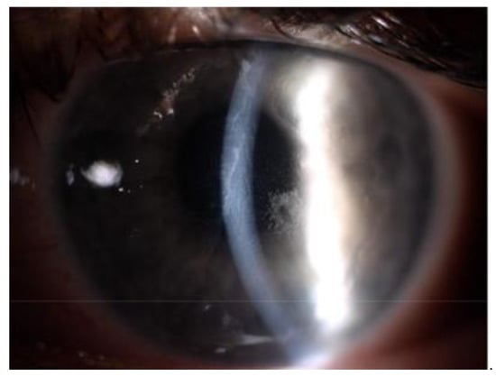 Slit lamp image of the left eye of the same patient 2 months after cxl.
