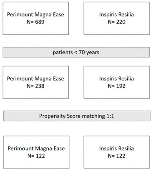 Therefore, the overall study population included 238 patients receiving PME prostheses and 192 receiving IR valves. Finally, a Propensity Score (PS) matching analysis was performed in order to account for the baseline differences between these two cohorts, thus obtaining two homogenous comparable groups (Figure 1).