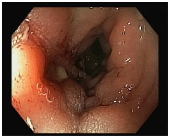 The patient was referred to the gastroenterology practice due to a routine faecal occult blood test that was positive and abnormal findings in the colonoscopy. She mentioned she had experienced vaginal bleeding in scarce quantities a few months prior, without other symptoms, namely changes in gastrointestinal habits, abdominal pain, bloating, haematochezia, weight loss, fever, or fatigue. The colonoscopy revealed inflammatory changes with a granular appearance in a significant part of the mucosal circumference in the sigmoid colon mucosa wall, approximately around 20 cm from the anal verge. There was a suspicion of a fistulous tract with purulent drainage (Figure 1) and that area was biopsied. The histopathological analysis of the biopsied areas showed chronic inflammatory unspecific colitis without malignant or premalignant changes and, therefore, a hypothesis of colonic ulcer or fistula was made.