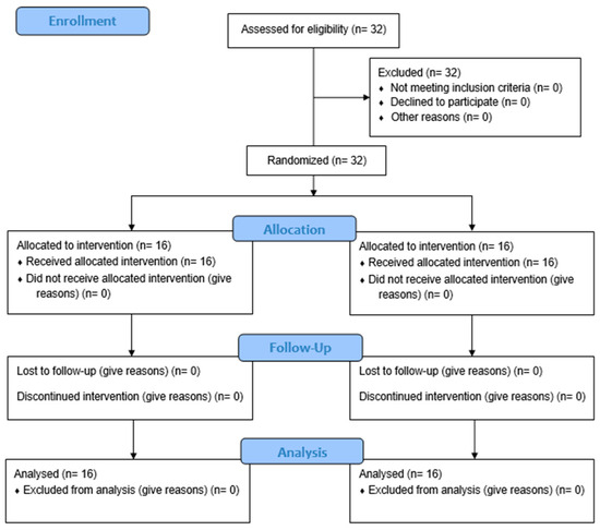 All participants were instructed to maintain their habitual dietary patterns and to refrain from using any supplements or stimulants, except for routine supplementation (e.g., creatine), during the week preceding the experiment. During the experimental session, body composition was assessed using bioelectrical impedance analysis with the InBody 770 device (InBody 770, Biospace Co., Ltd., Seoul, Republic of Korea), under controlled laboratory conditions. The study employed a randomized crossover design with participant blinding regarding the specific experimental condition to which they were assigned. Randomization was conducted using an online randomization tool (randomization.org)which assigned each participant a unique identifier and session sequence. Following allocation, participants were not informed of subsequent procedures []. Detailed information regarding the study’s purpose and expected outcomes was also withheld to minimize bias. All participants were informed about the potential risks and benefits of the study, as well as their right to withdraw at any point without providing justification. Written informed consent was obtained from all participants, although specific details concerning the study objectives and anticipated findings were not disclosed. All participants completed the experiment (Figure 2). The entire research protocol was conducted at the Academy of Physical Education in Katowice, Poland. The experiment received formal approval from the Bioethics Committee for Scientific Research (03/2021, approval date 27 May 2021) at the Academy of Physical Education in Katowice in accordance with the ethical principles outlined in the Declaration of Helsinki of 1983.