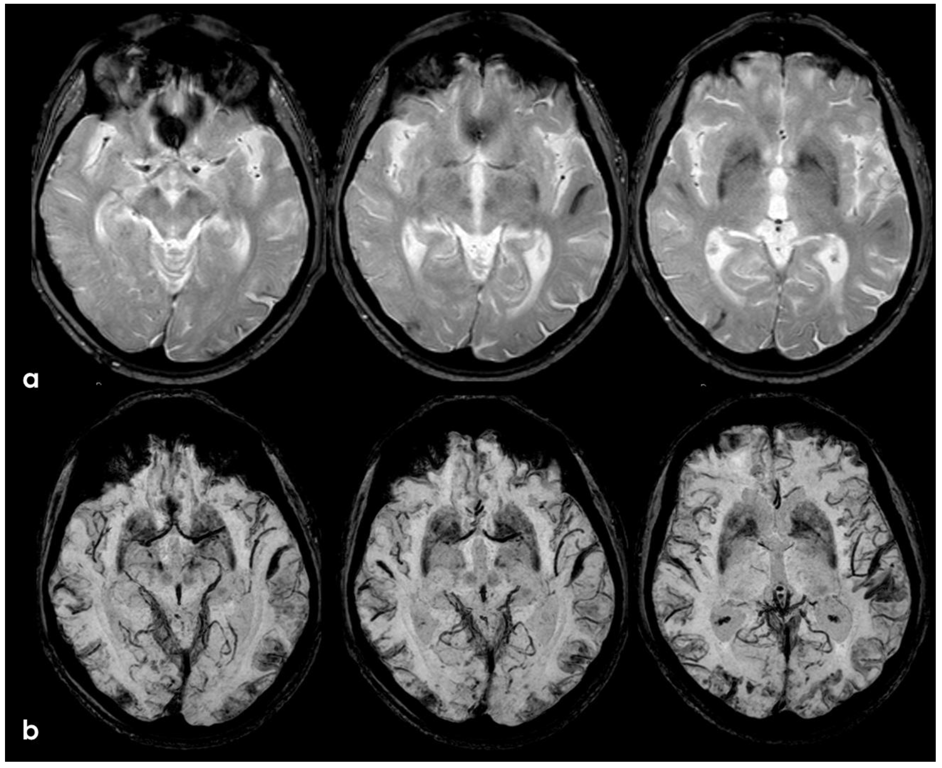 - Charidimou, A.; Linn, J.; Vernooij, M.W.; Opherk, C.; Akoudad, S.; Baron, J.-C.; Greenberg, S.M.; Jäger, H.R.; Werring, D.J. Cortical superficial siderosis: Detection and clinical significance in cerebral amyloid angiopathy and related conditions. Brain 2015, 138 Pt 8, 2126–2139. [Google Scholar] [CrossRef]